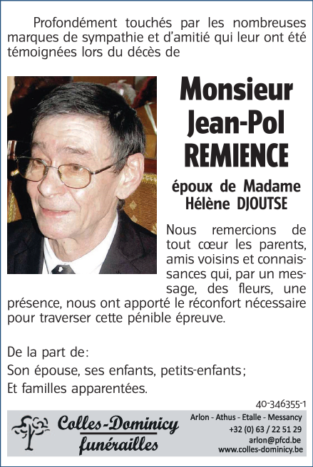 Fallecido en Bouge (5004) el domingo, 11 de octubre de 2020 a la edad de 67 años