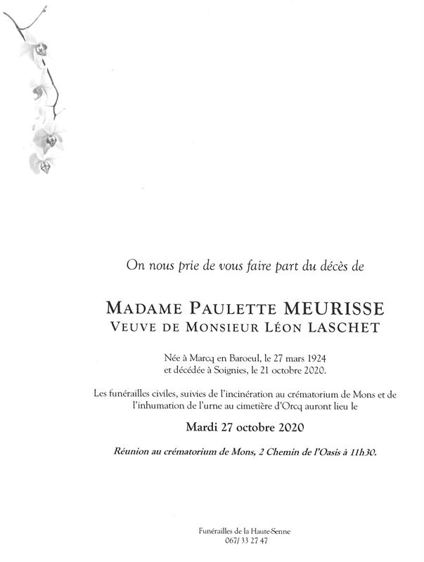Died in Soignies (7060) on 21 October 2020 at the age of 96 years