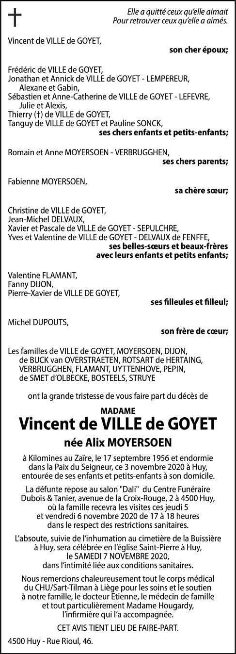 Spouse of Monsieur Vincent de VILLE de GOYET