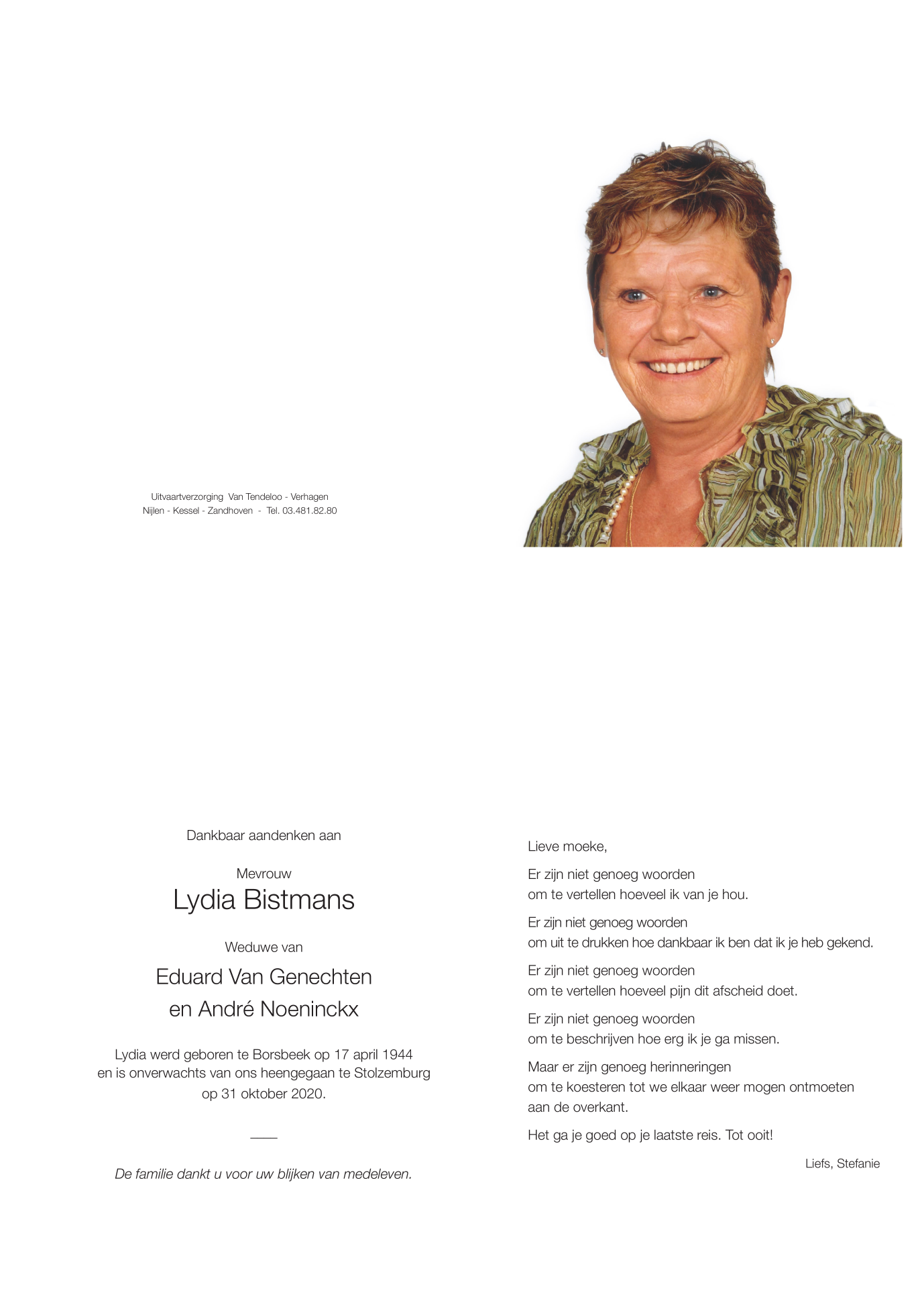Née à Borsbeek (Antw.) (2150) le lundi 17 avril 1944