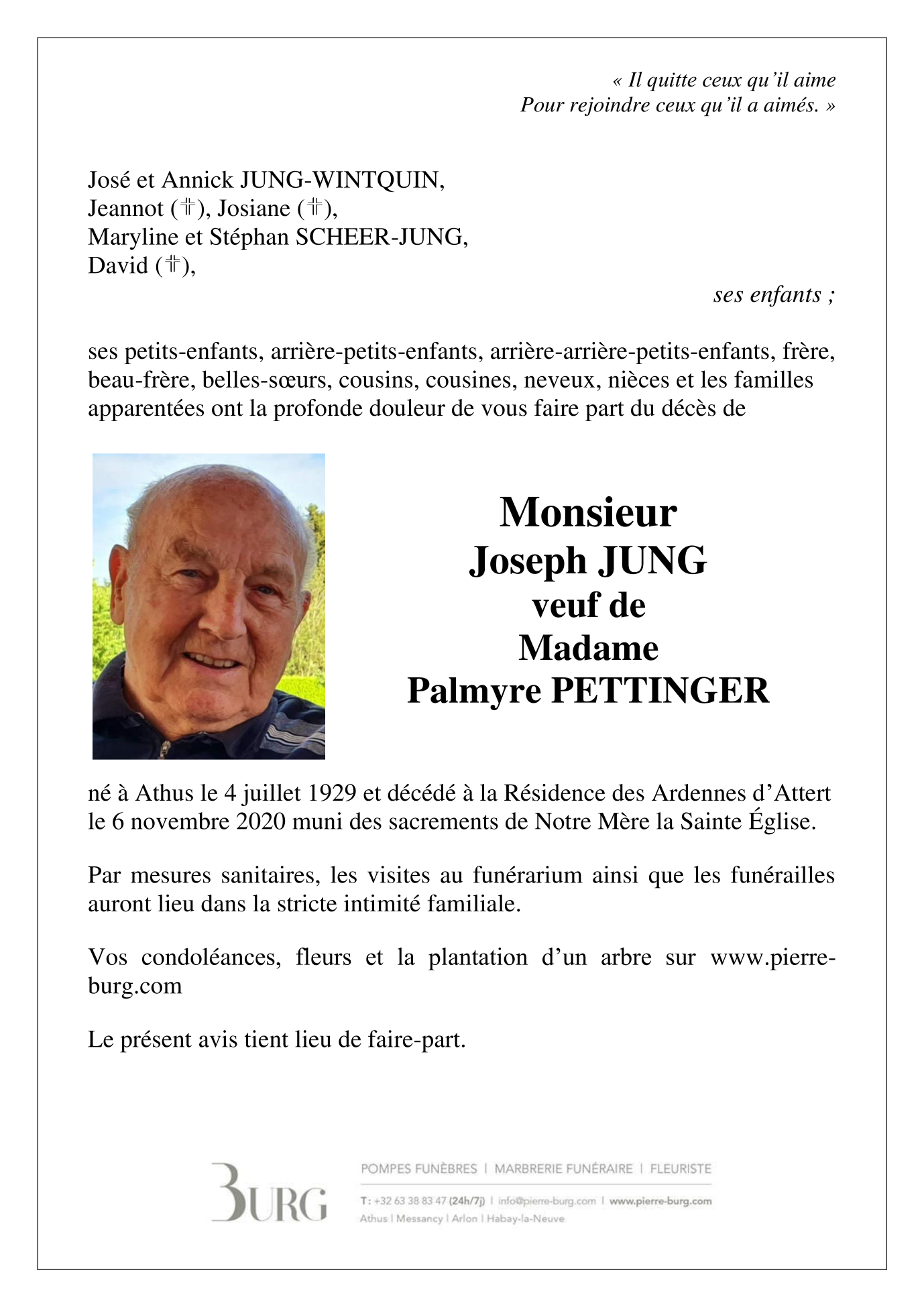 Décédé à Attert (6717) le vendredi 6 novembre 2020 à l'âge de 91 ans