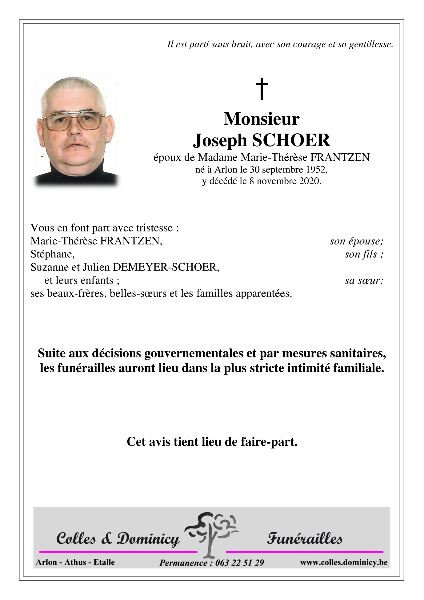 Died in Arlon (6700) on 08 November 2020 at the age of 68 years