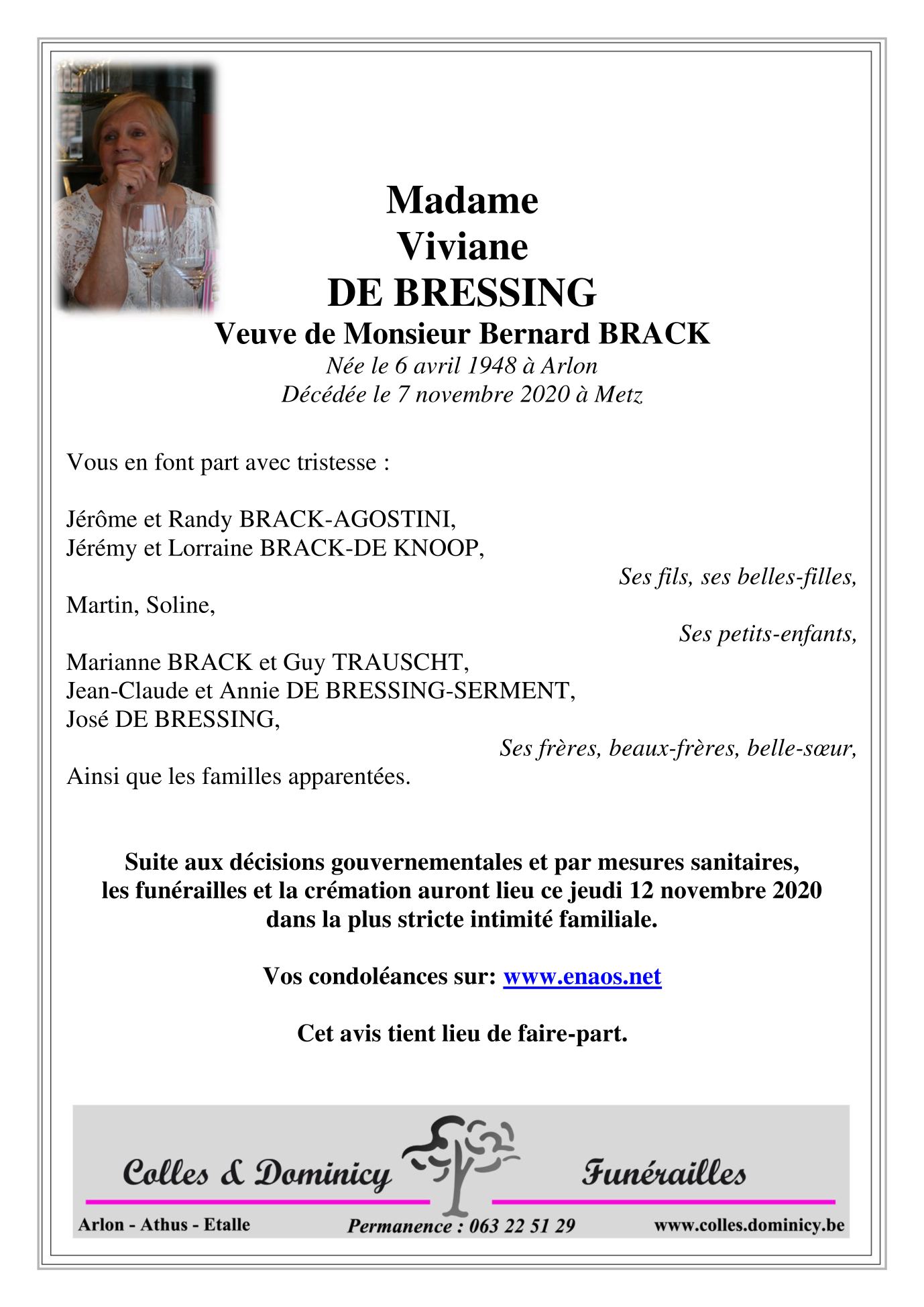 Veuve de Monsieur Bernard BRACK