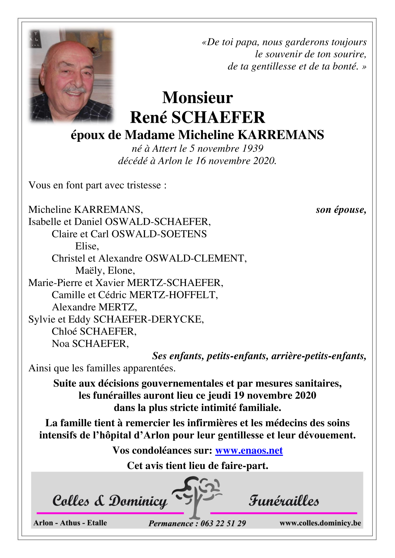 Died in Arlon (6700) on 16 November 2020 at the age of 81 years