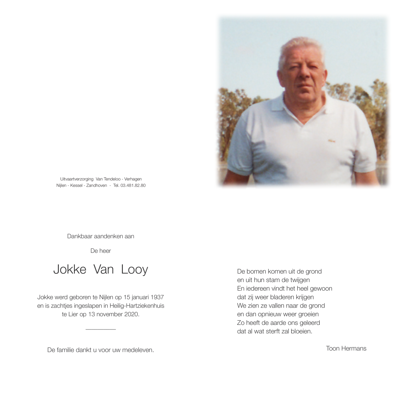 Né à Nijlen (2560) le vendredi 15 janvier 1937