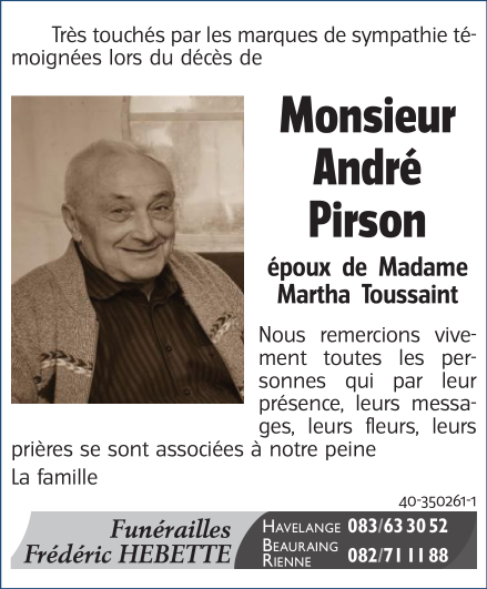 Décédé à Dinant (5500) le lundi 9 novembre 2020 à l'âge de 89 ans