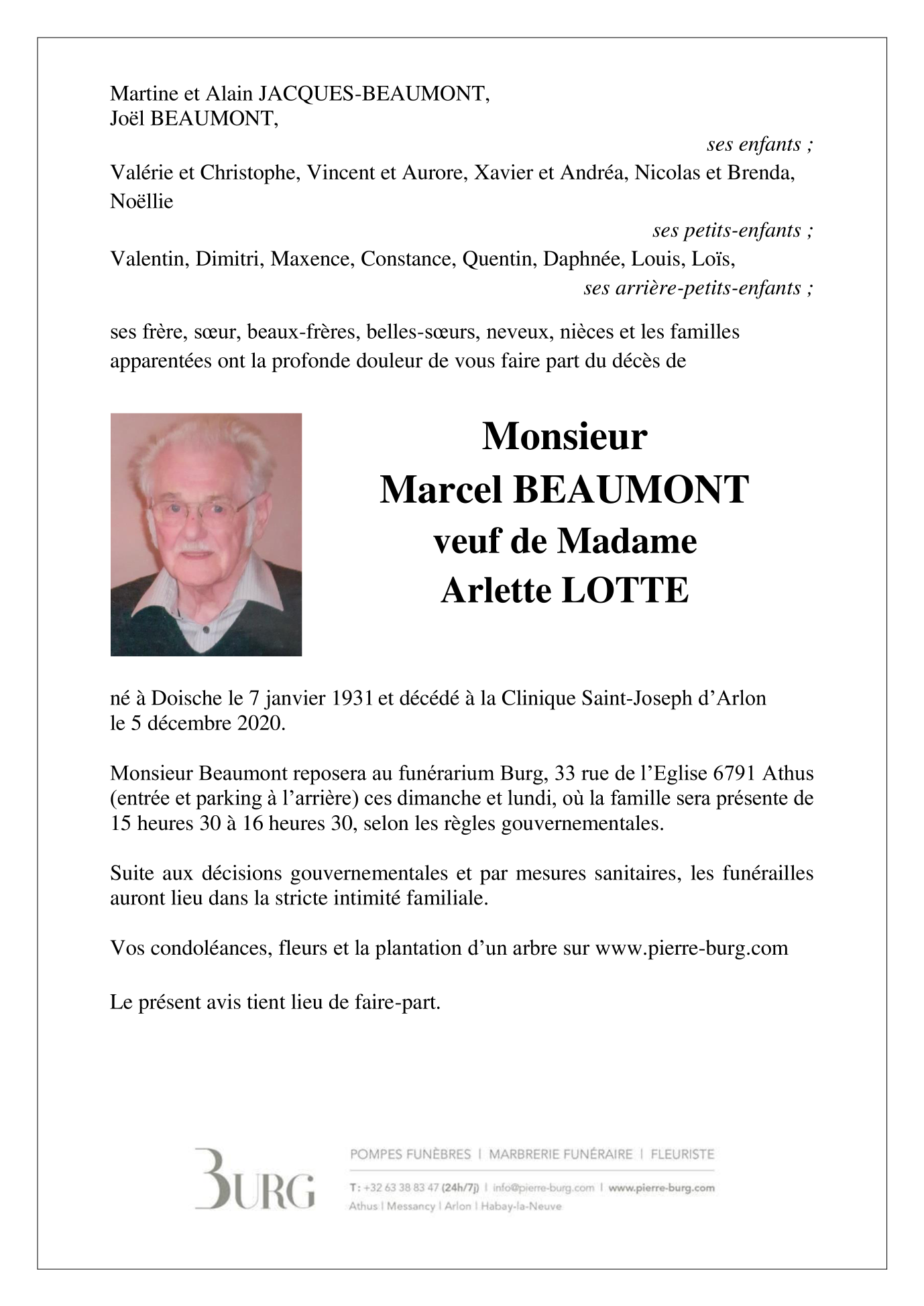Décédé à Arlon (6700) le samedi 5 décembre 2020 à l'âge de 89 ans