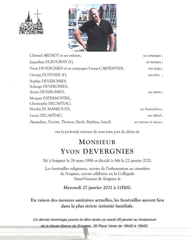 Fallecido en Ath (7800) el viernes, 22 de enero de 2021 a la edad de 34 años