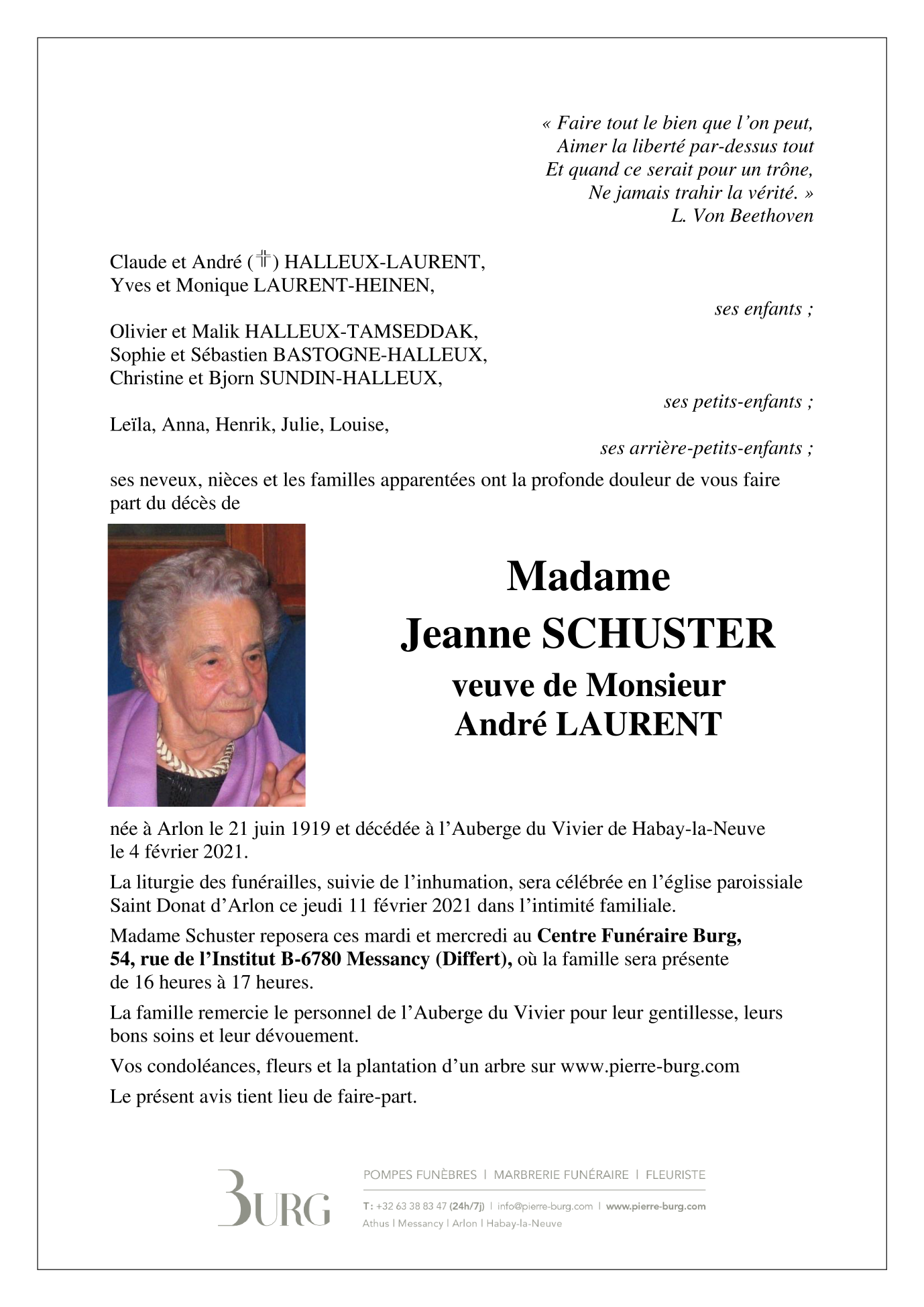Overleden te Habay (6720) op donderdag 4 februari 2021 op 101-jarige leeftijd