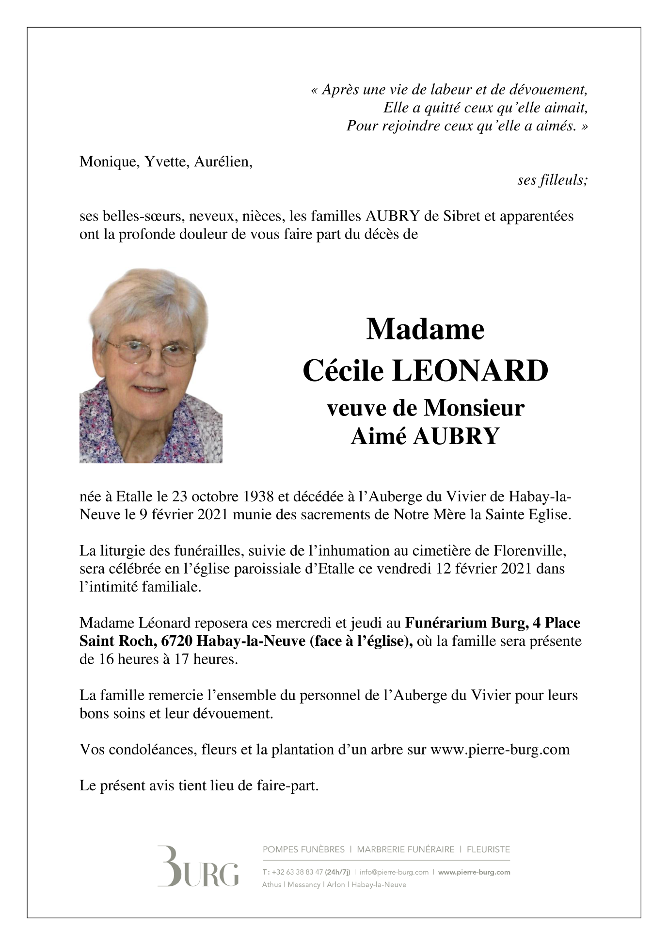 Died in Habay (6720) on 09 February 2021 at the age of 82 years