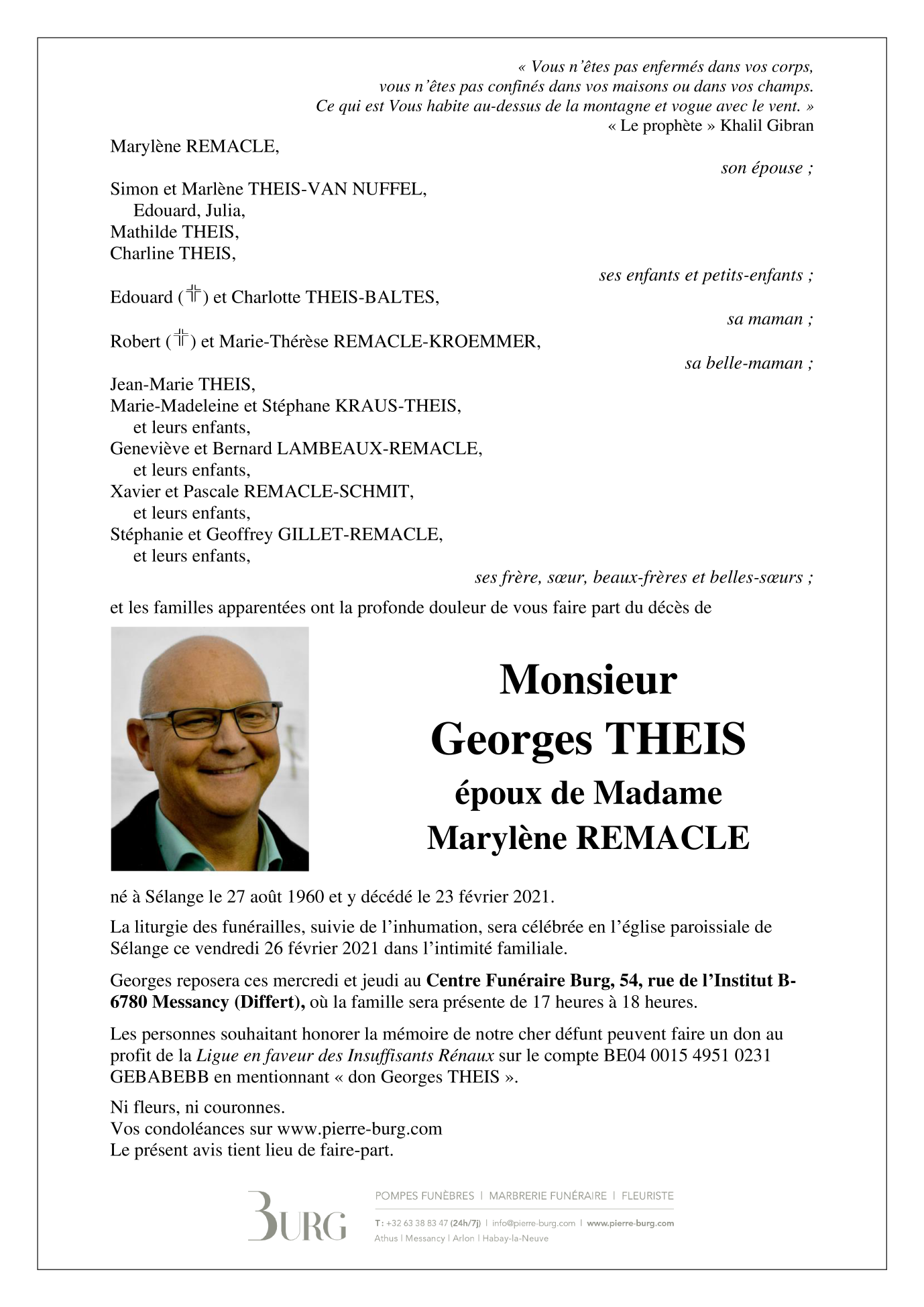 Décédé à Sélange (6781) le mardi 23 février 2021 à l'âge de 60 ans