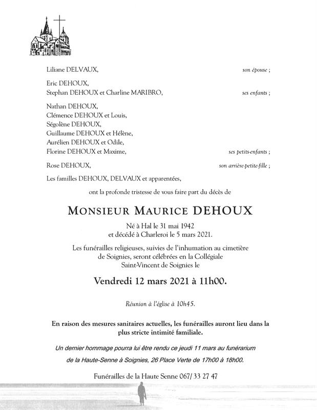 Décédé à Charleroi (6000) le vendredi 5 mars 2021 à l'âge de 78 ans