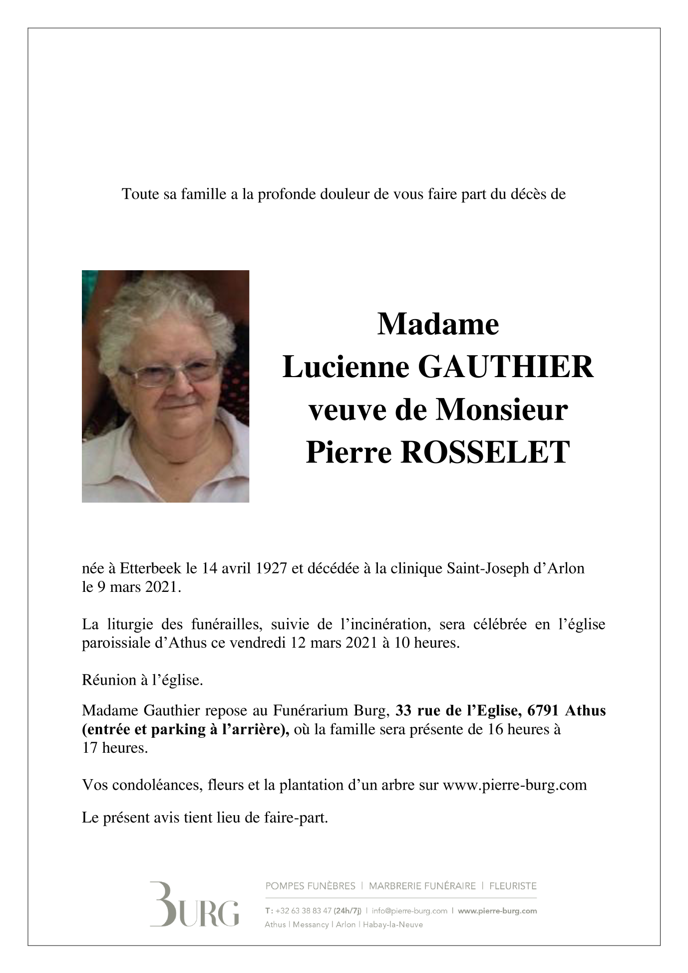 Décédée à Arlon (6700) le mardi 9 mars 2021 à l'âge de 93 ans