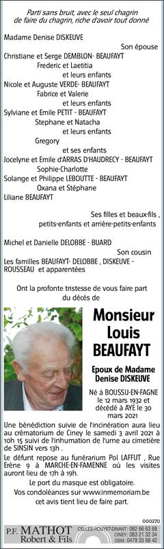 Décédé à Aye (6900) le mardi 30 mars 2021 à l'âge de 89 ans
