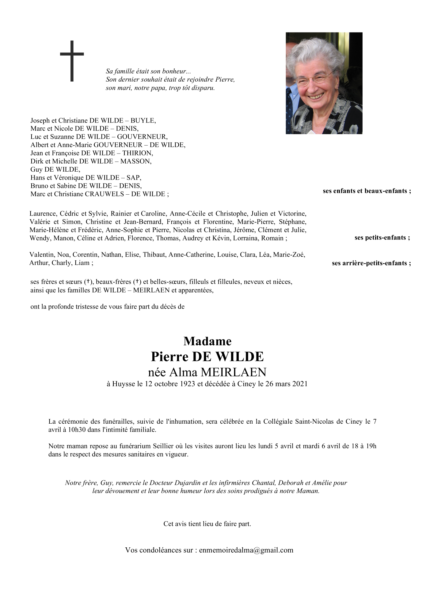 Madame Alma De WILDE née MEIRLAEN