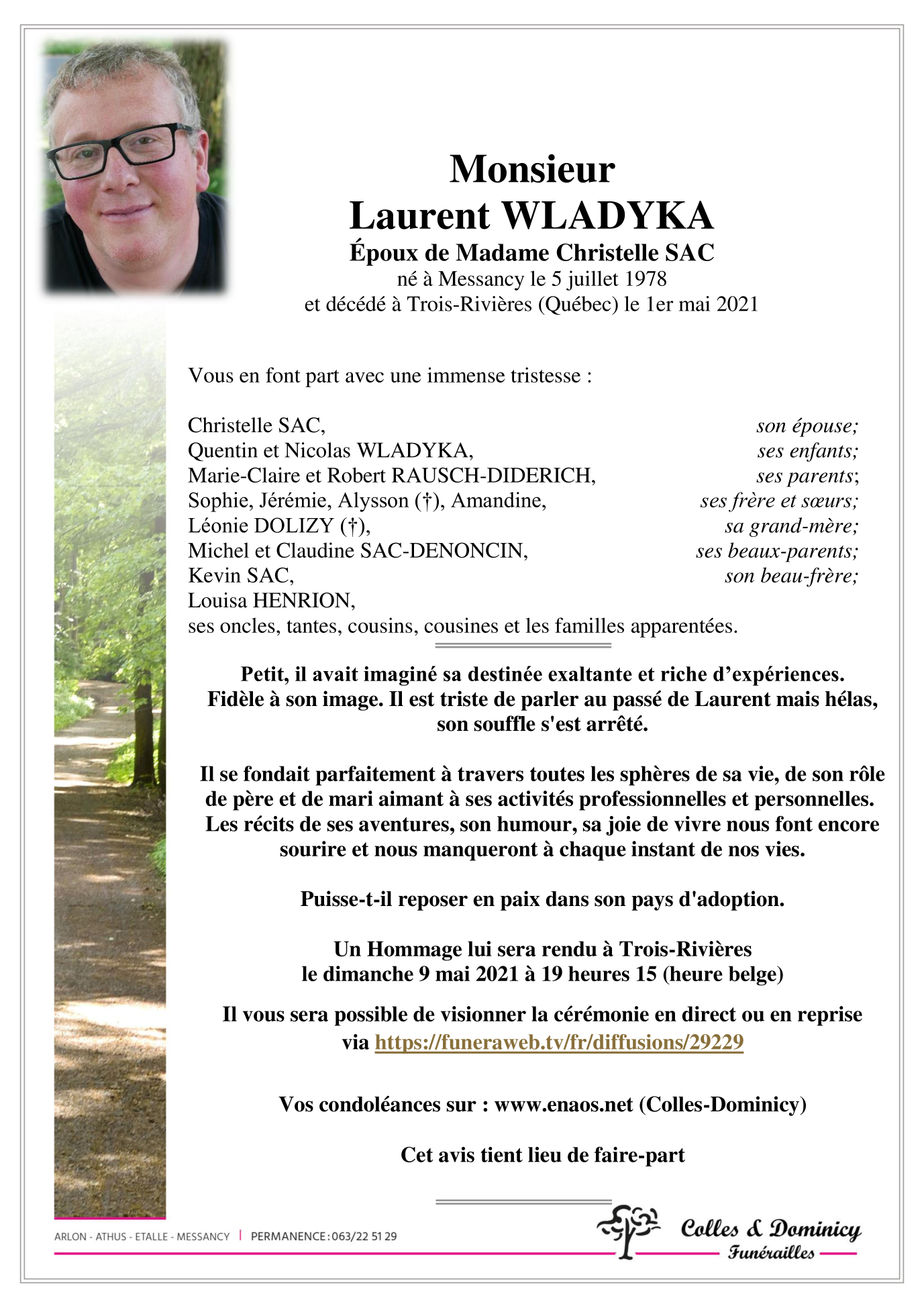 Overleden te Trois-Rivieres (G8T, Canada) op zaterdag 1 mei 2021 op 42-jarige leeftijd