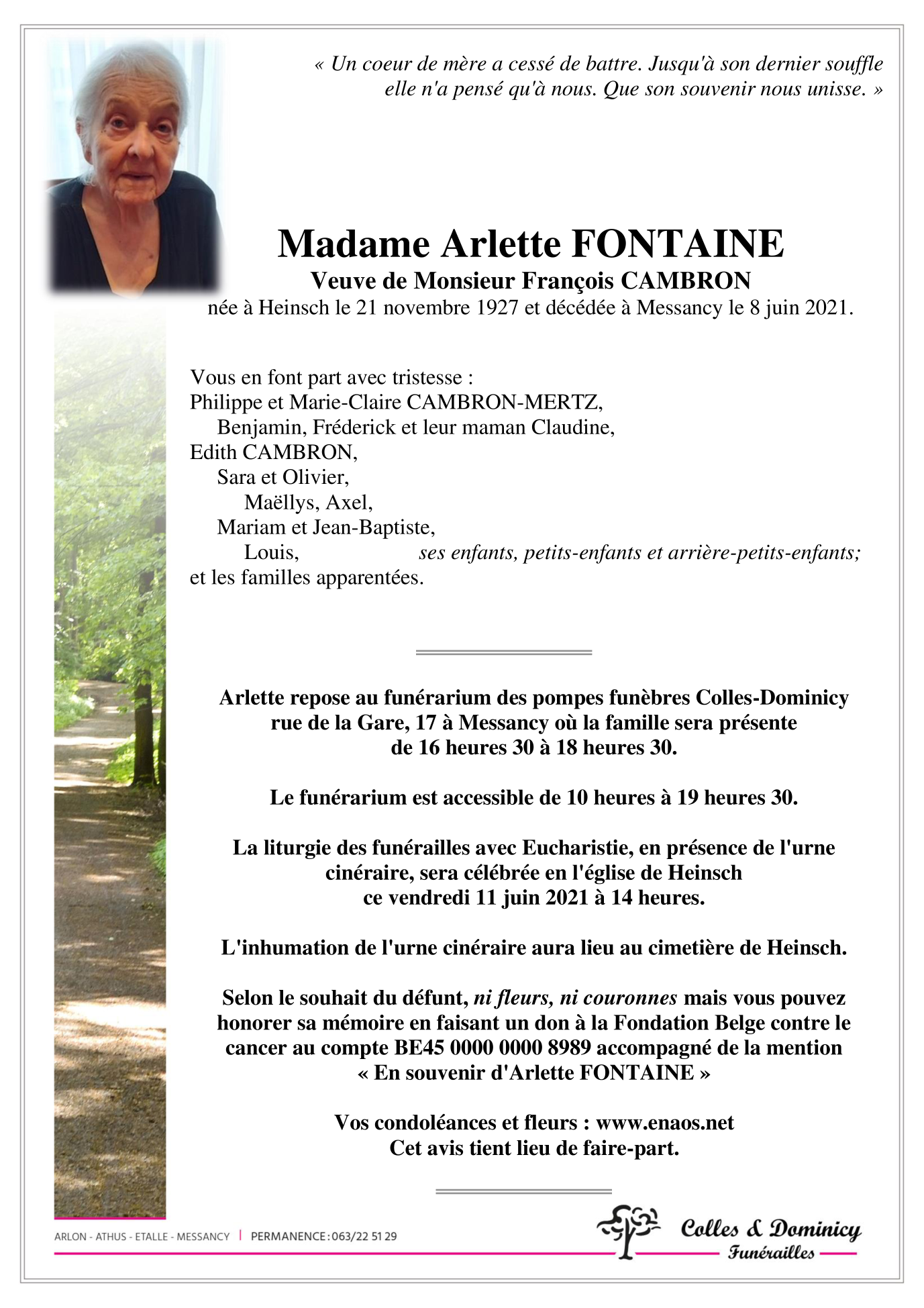 Died in Messancy (6780) on 08 June 2021 at the age of 93 years
