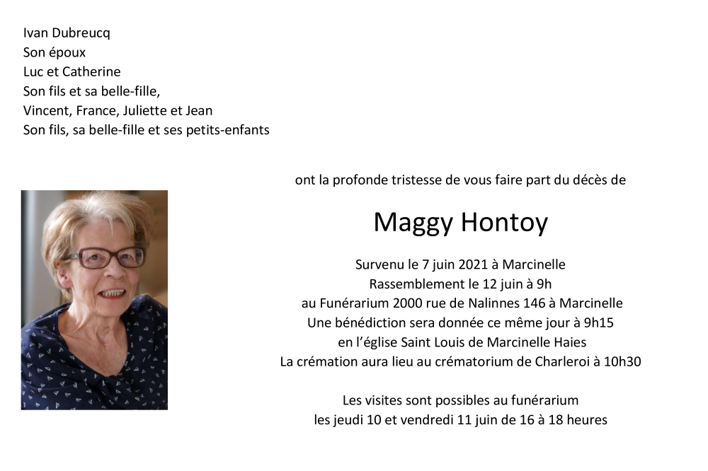 Décédée à Marcinelle (6001) le lundi 7 juin 2021 à l'âge de 82 ans