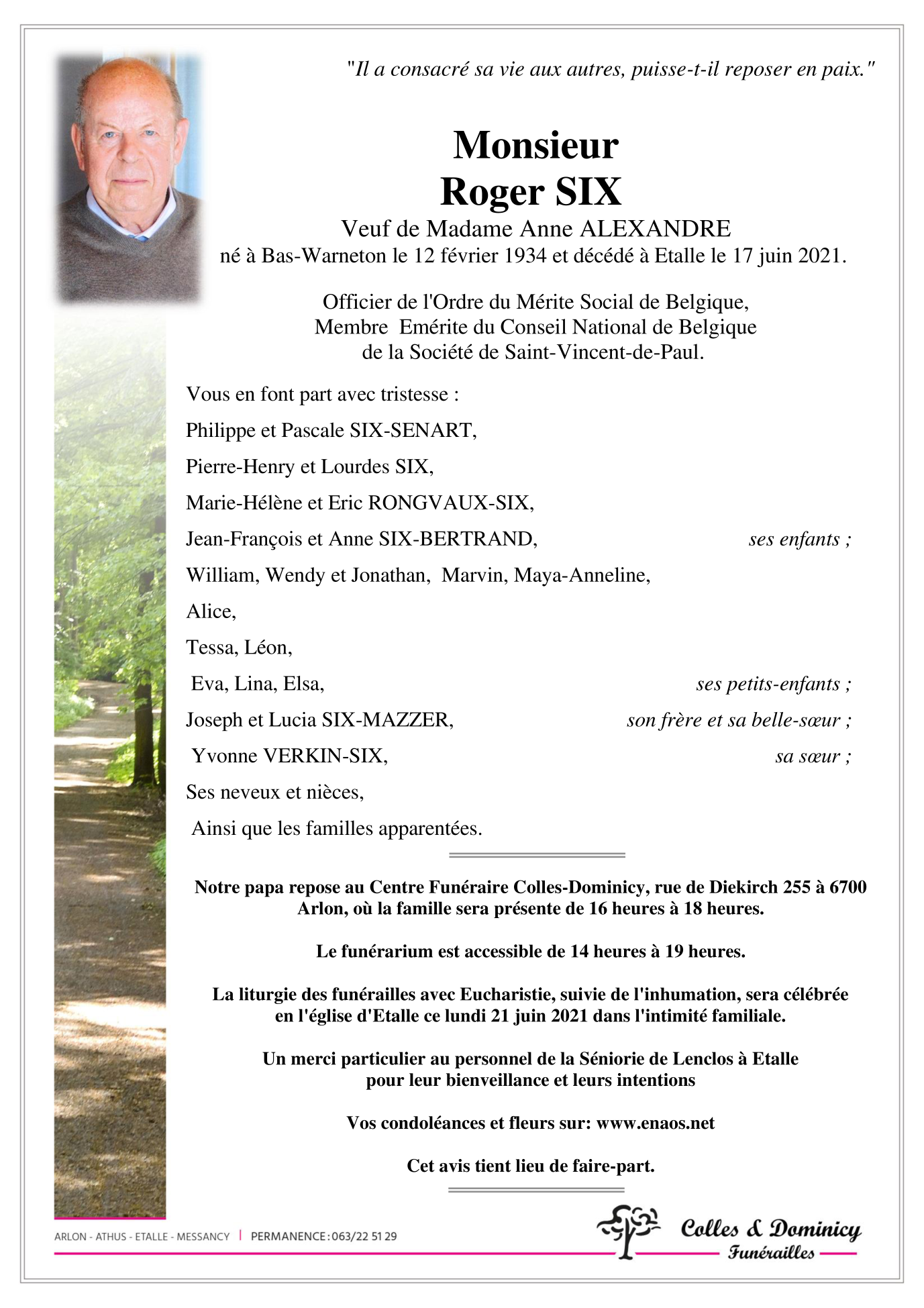 Décédé à Etalle (6740) le jeudi 17 juin 2021 à l'âge de 87 ans