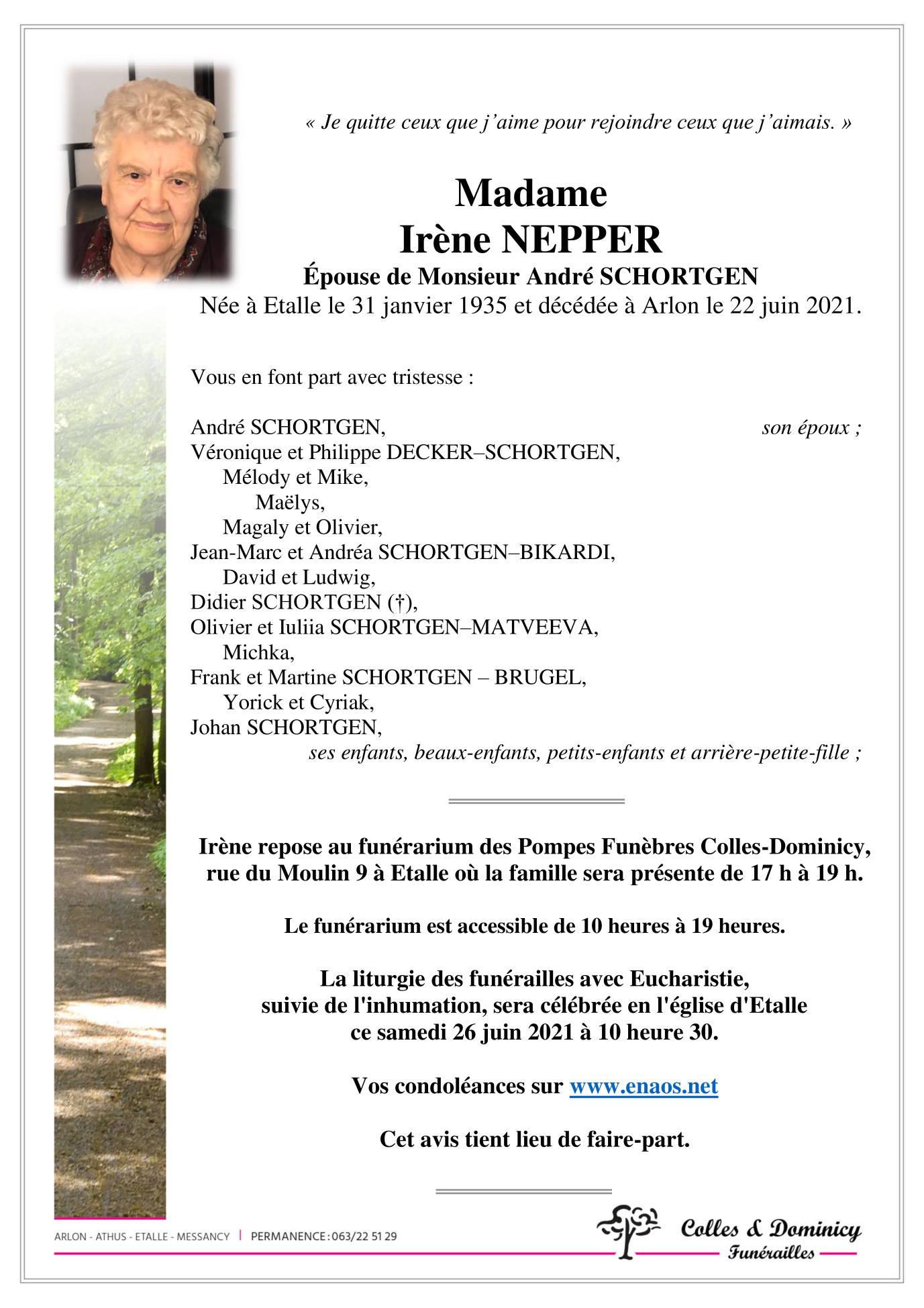 Overleden te Arlon (6700) op dinsdag 22 juni 2021 op 86-jarige leeftijd