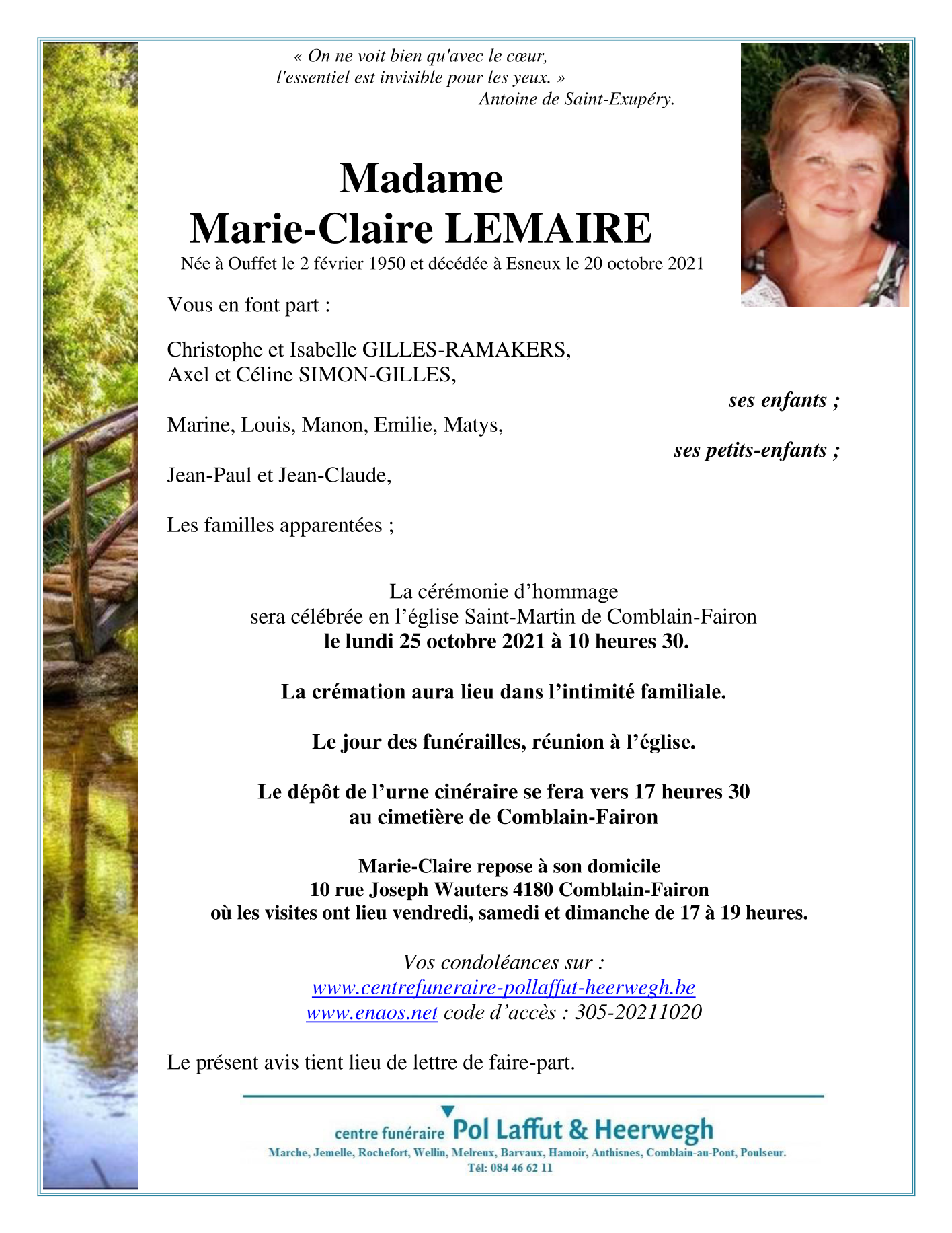 Died in Esneux (4130) on 20 October 2021 at the age of 71 years