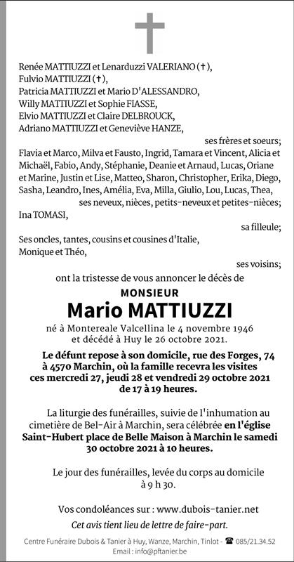 Décédé à Huy (4500) le mardi 26 octobre 2021 à l'âge de 74 ans