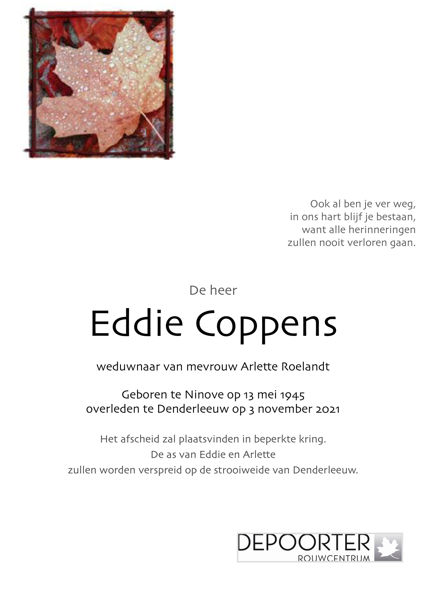 Overleden te Denderleeuw (9470) op woensdag 3 november 2021 op 76-jarige leeftijd