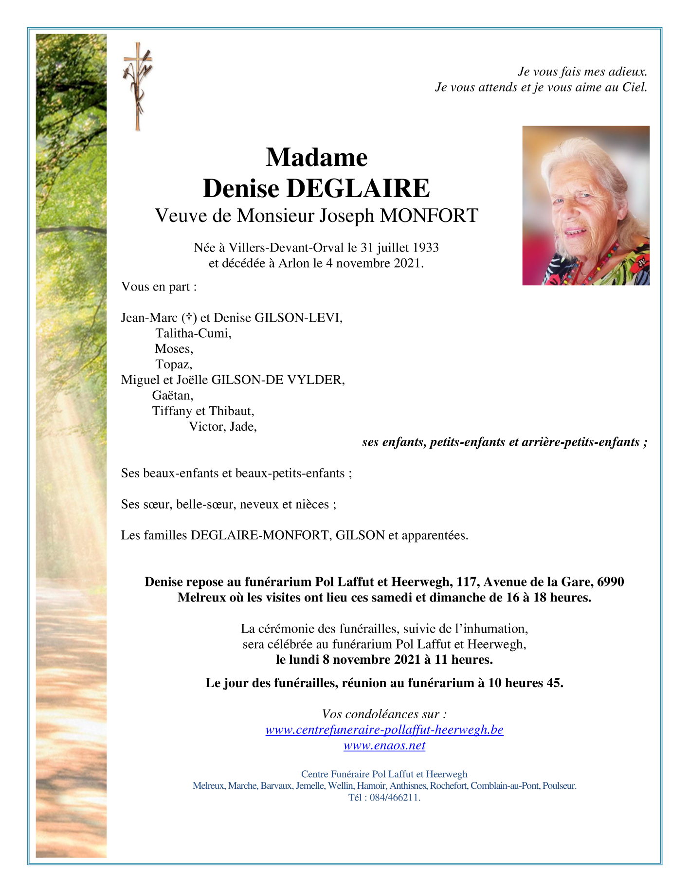 Décédée à Arlon (6700) le jeudi 4 novembre 2021 à l'âge de 88 ans