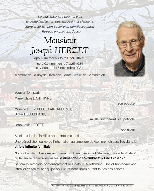 Fallecido en Gemmenich (4851) el viernes, 5 de noviembre de 2021 a la edad de 87 años