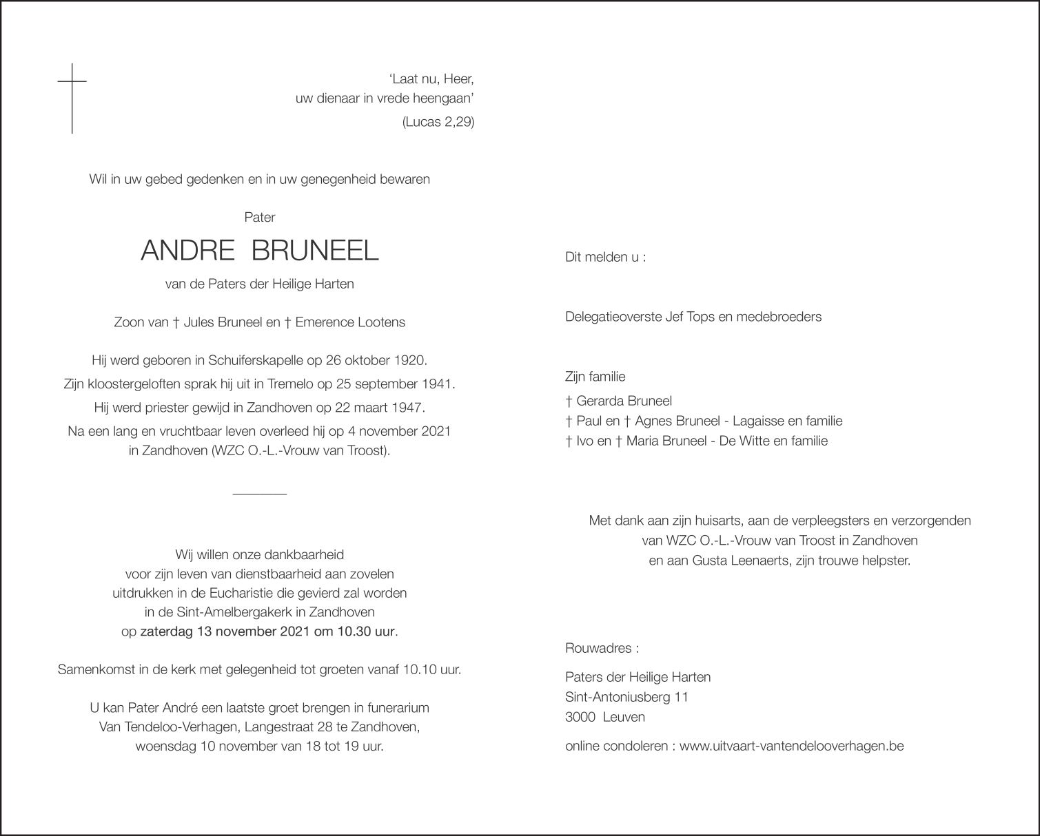 Décédé à Zandhoven (2240) le jeudi 4 novembre 2021 à l'âge de 101 ans
