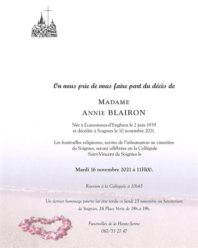 Died in Soignies (7060) on 10 November 2021 at the age of 82 years