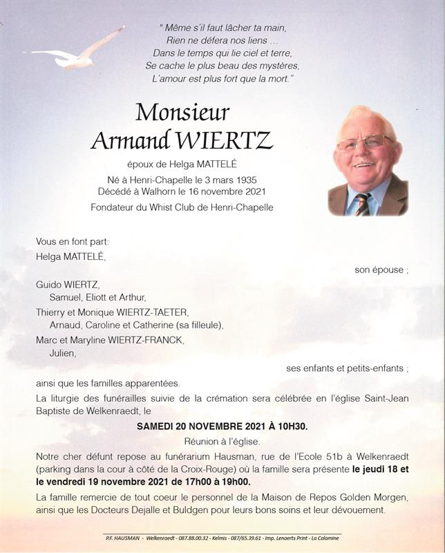 Décédé à Walhorn (4711) le mardi 16 novembre 2021 à l'âge de 86 ans