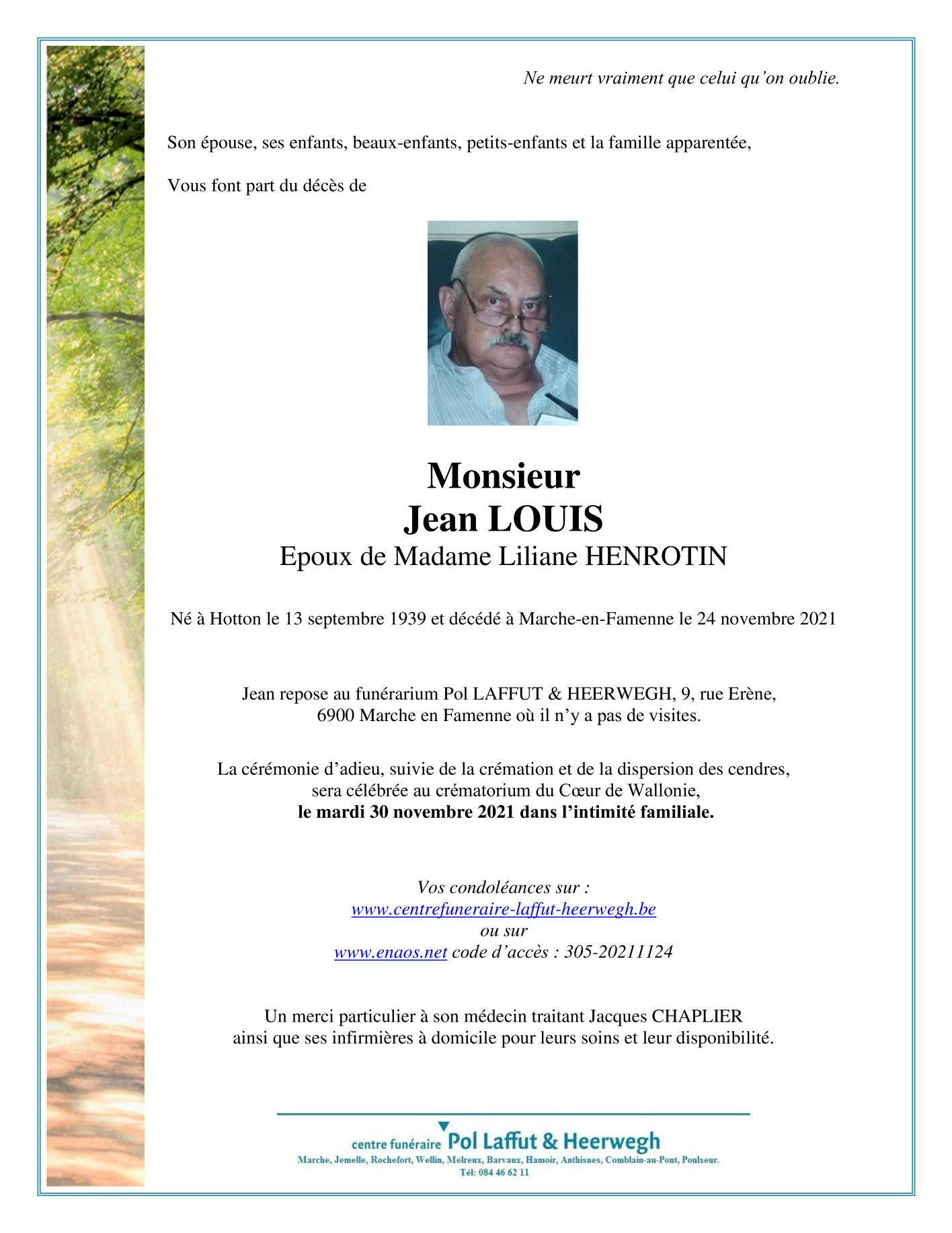 Died in Marche-en-Famenne (6900) on 24 November 2021 at the age of 82 years