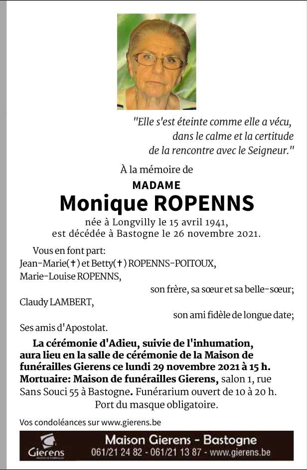 Died in Bastogne (6600) on 26 November 2021 at the age of 80 years