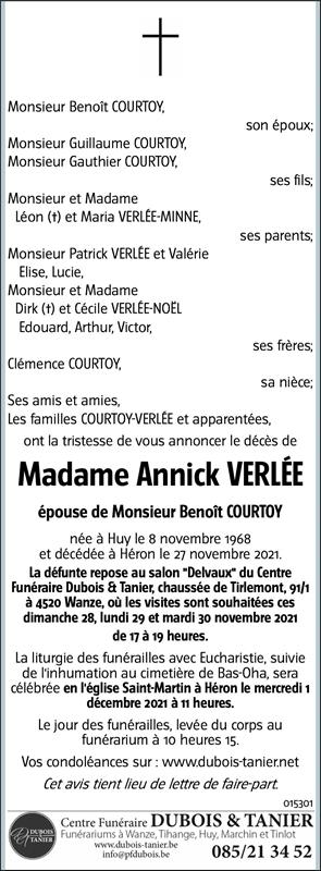 Décédée à Héron (4217) le samedi 27 novembre 2021 à l'âge de 53 ans