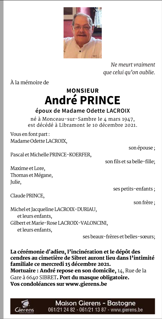Décédé à Libramont-Chevigny (6800) le vendredi 10 décembre 2021 à l'âge de 74 ans