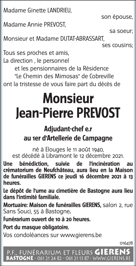 Décédé à Libramont-Chevigny (6800) le dimanche 12 décembre 2021 à l'âge de 81 ans