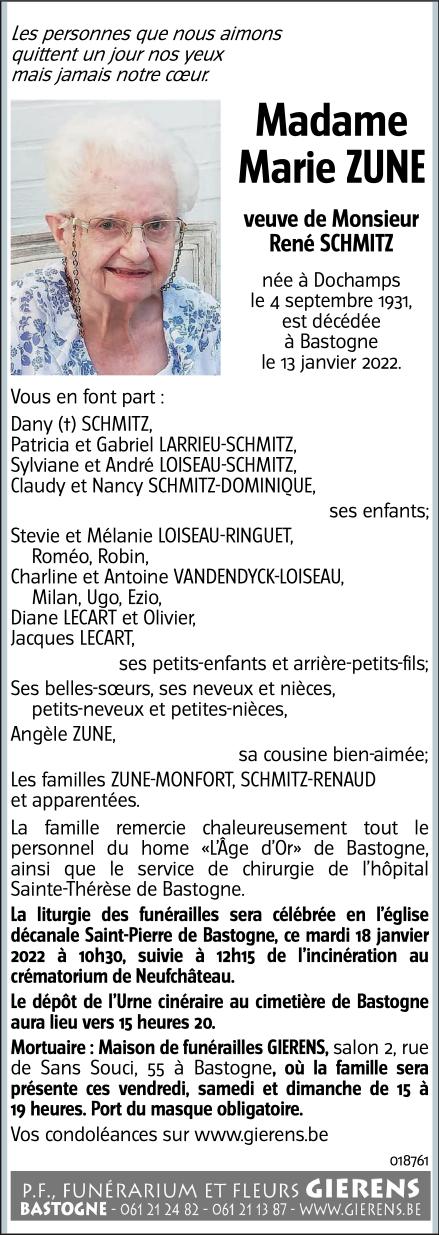 Died in Bastogne (6600) on 13 January 2022 at the age of 90 years