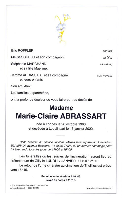 Décédée à Lodelinsart (6042) le jeudi 13 janvier 2022 à l'âge de 58 ans