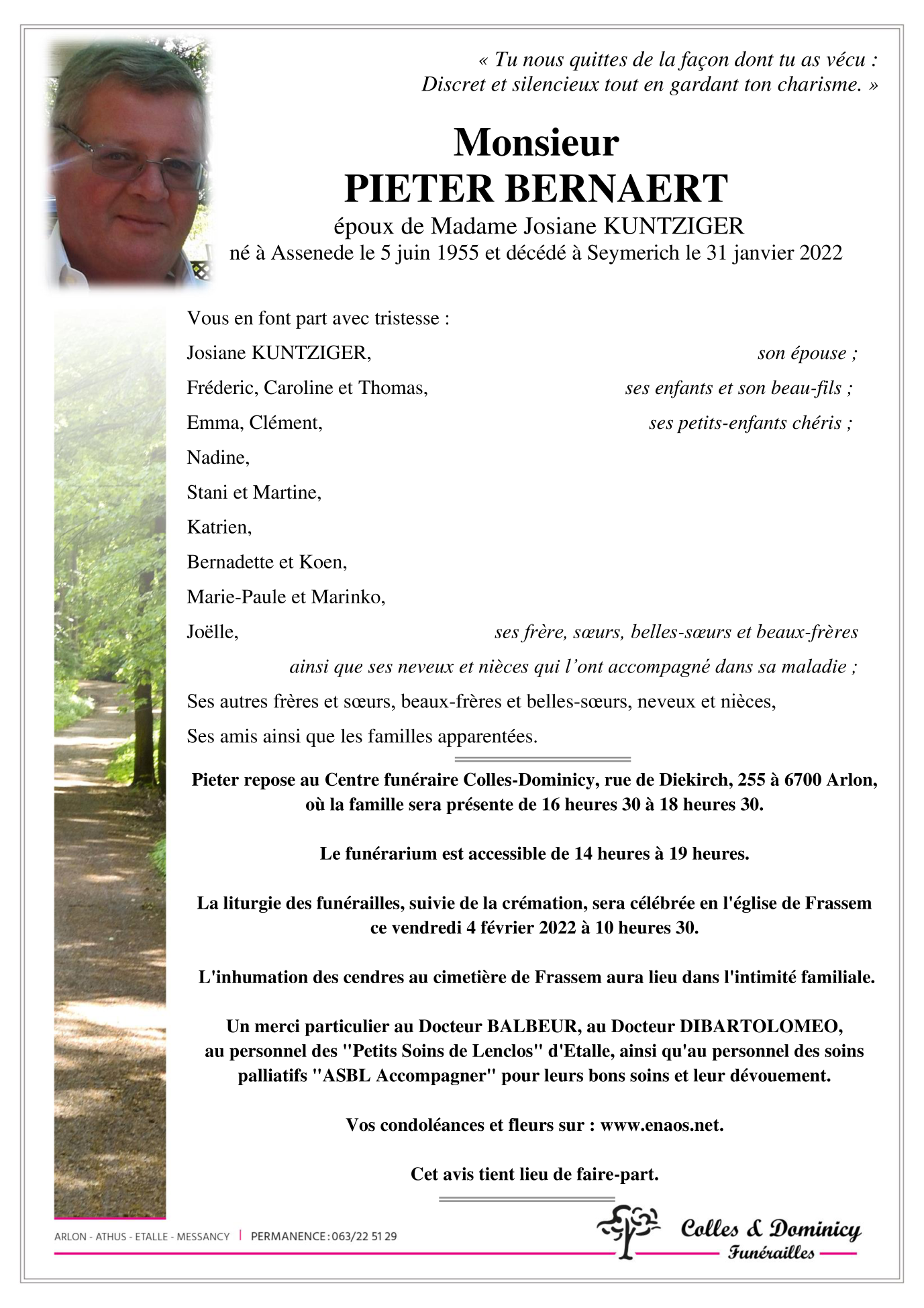 Décédé à Frassem (6700) le lundi 31 janvier 2022 à l'âge de 66 ans
