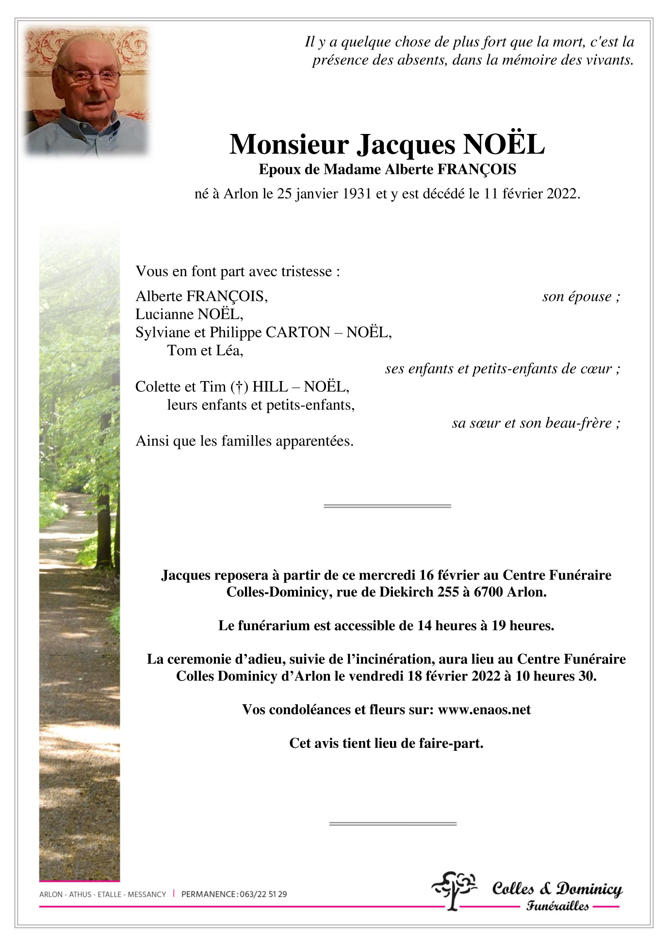 Décédé à Arlon (6700) le vendredi 11 février 2022 à l'âge de 91 ans