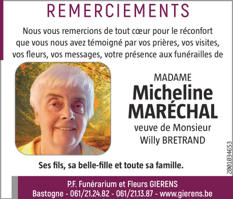 Décédée à Libramont-Chevigny (6800) le mardi 25 janvier 2022 à l'âge de 80 ans