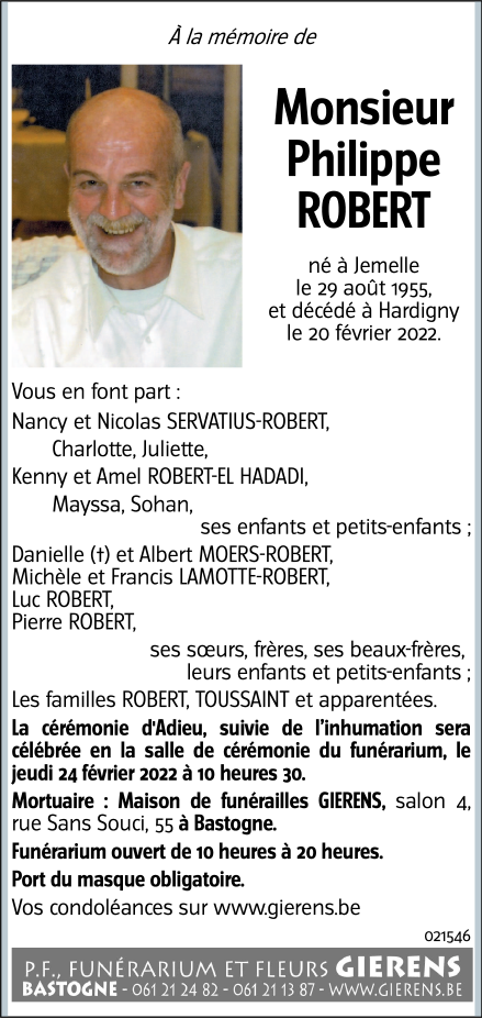 Fallecido en Bastogne (6600) el domingo, 20 de febrero de 2022 a la edad de 66 años