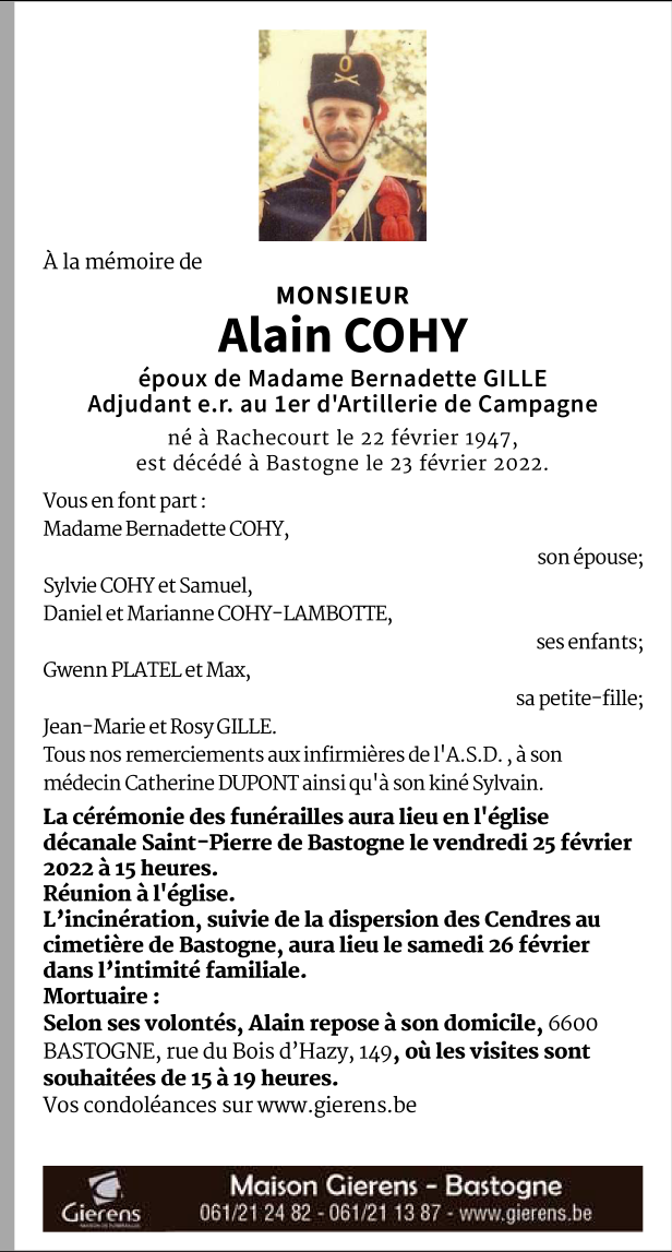 Décédé à Bastogne (6600) le mercredi 23 février 2022 à l'âge de 75 ans