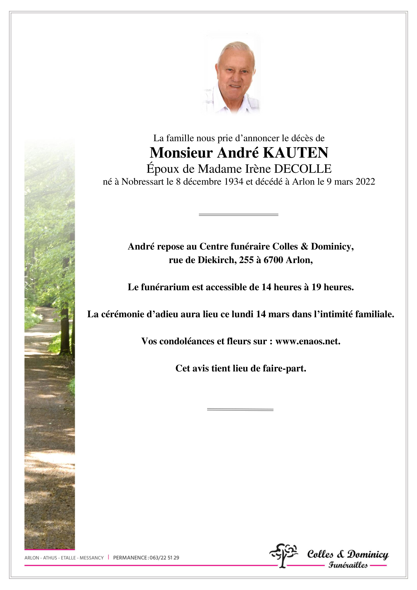 Fallecido en Arlon (6700) el miércoles, 9 de marzo de 2022 a la edad de 87 años