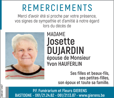 Décédée à Libramont-Chevigny (6800) le jeudi 3 mars 2022 à l'âge de 70 ans