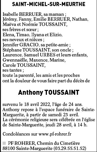 Décédé à Schonach (78136, Allemagne) le lundi 18 avril 2022 à l'âge de 24 ans
