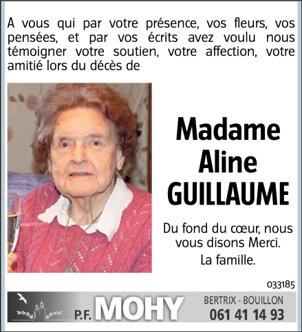 Décédée à Bertrix (6880) le jeudi 18 août 2022 à l'âge de 96 ans