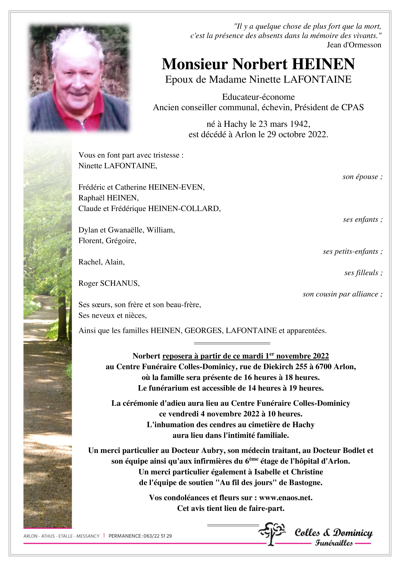 Overleden te Arlon (6700) op zaterdag 29 oktober 2022 op 80-jarige leeftijd