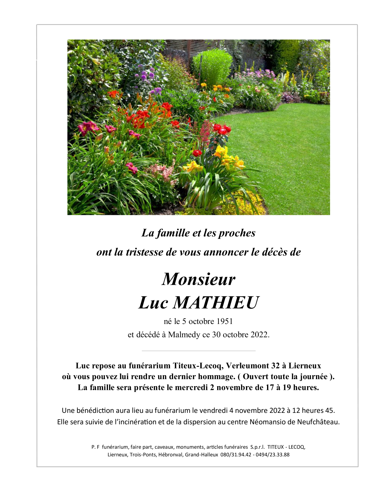Décédé à Malmedy (4960) le dimanche 30 octobre 2022 à l'âge de 71 ans